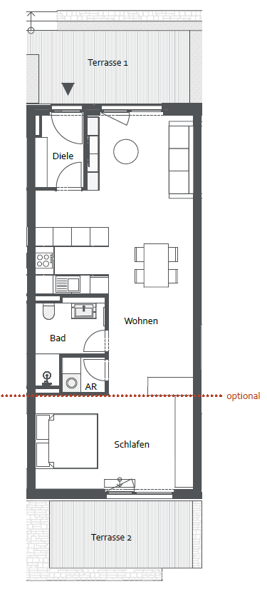 Mit zwei Terrassenflächen verschmilzt Innen mit Außen – ideal für Ihre persönliche Pause im Grünen, das Feierabendgetränk oder die erste Tasse Kaffee im Sonnenschein.