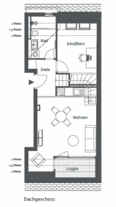In der Wohneinheit 11.19, gelegen im Dachgeschoss des zweiten Bauabschnitts von Gutshof Living Jena, erwartet Sie ein feines Raumgefühl. Zwei Ebenen – Dachgeschoss und Dachboden – schaffen nicht nur Struktur, sondern auch echte Wohnqualität.