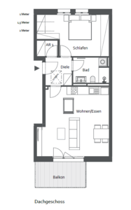 Wohneinheit 13.07 im Dachgeschoss von Gutshof Living Jena verbindet durchdachtes Wohnen mit stilvoller Großzügigkeit – ergänzt durch zusätzlichen Dachbodenraum. Ideal für alle, die Licht, Weite und klare Struktur zu schätzen wissen.